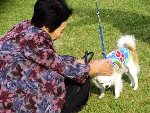 大沼公園でもお散歩中のワンちゃんと出会い、大好きな犬に触れたことに大喜びされ、